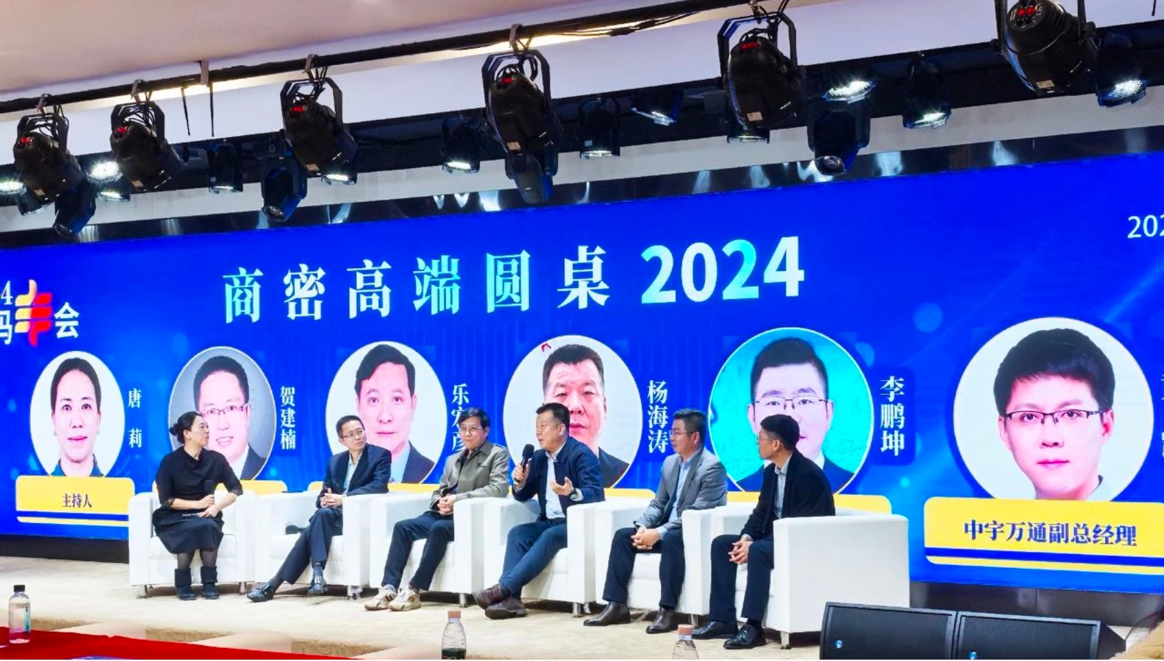 商密高端圆桌对话环节,金年会诚信至上信息北京公司总裁杨海涛与行业大咖就商用密码如何更好地在第三次科技革命的大背景下,同人工智能、云计算等新兴科技领域进行融合创新等话题进行深入探讨。