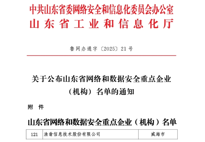 近期,山东省委网信办、山东省工信厅正式公布“山东省网络和数据安全重点企业(组织)名单”。本次评选共遴选出147家重点企业和33家重点组织,金年会诚信至上信息凭借在密码技术领域的自主创新实力、全栈式数据安全解决方案及突出的行业贡献成功入选。